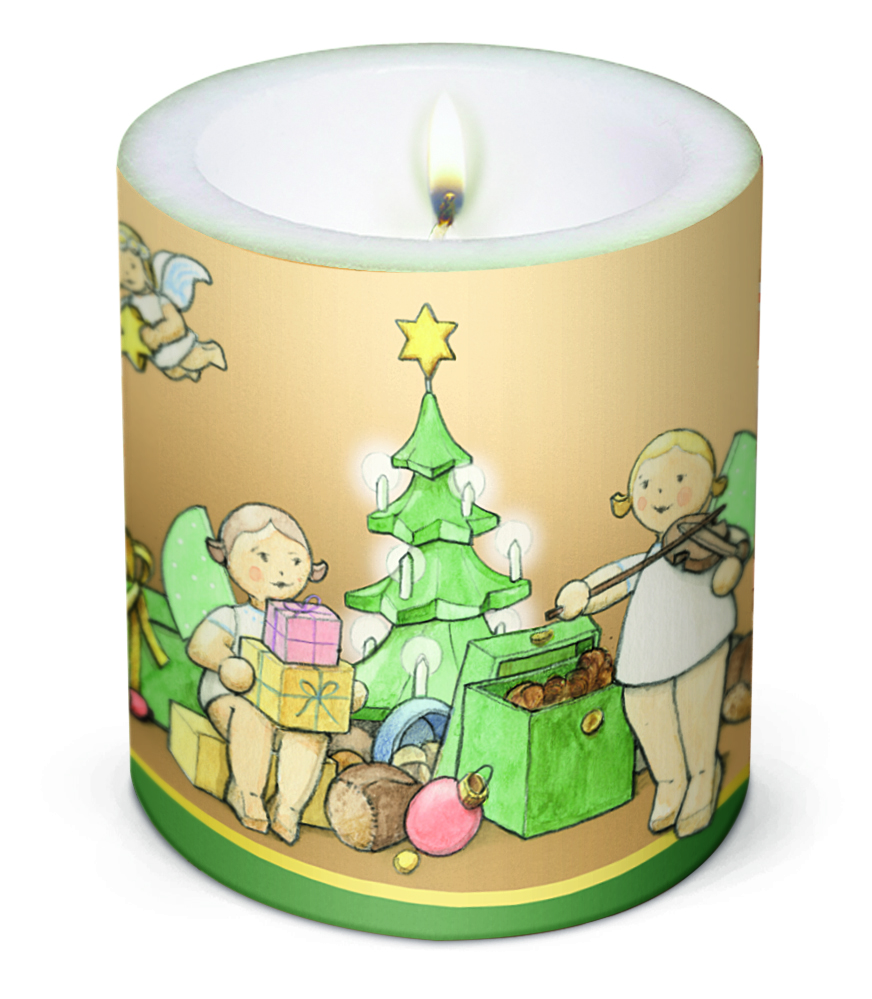 In Comic-Stil bedruckt, bildet diese Blockkerze eine weihnachtliche Szene ab: Zwei Wendt und Kühn Engel am Christbaum, einer musizierend, einer mit einem Berg an Geschenken beladen. Das liebevoll gestaltete, detailgetreue Motiv macht die schlichte Kerze so zu einem echten Blickfang! Perfekt für alle, die von den Wendt und Kühn Weihnachtsengeln nicht genug bekommen können!