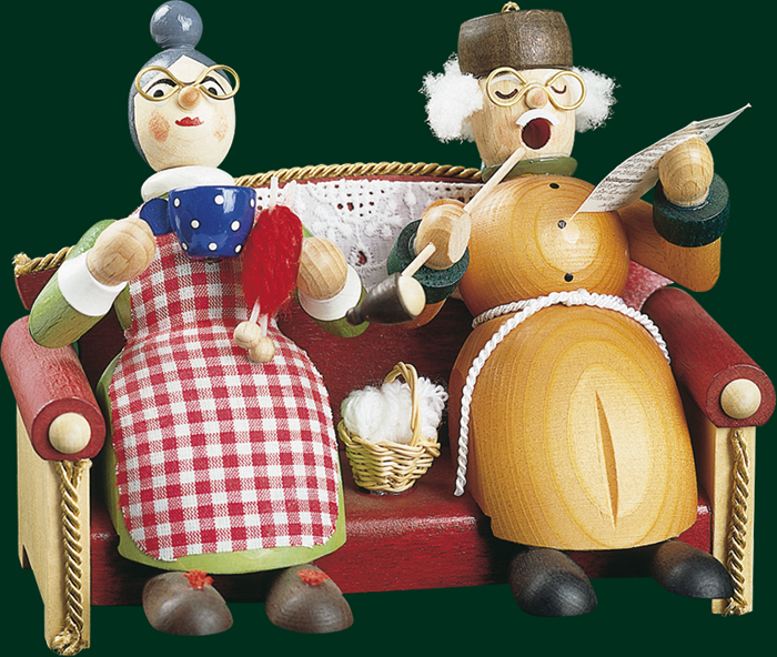 Mit ihrer gemütlichen Ausstrahlung bringen Oma und Opa auf Sofa eine besondere Wärme und weihnachtliche Atmosphäre in jedes Zuhause. Bemalt mit bunten Farbnuancen und beschäftigt je nach Vorlieben spiegeln sie ein Sinnbild für Zusammenhalt wider. Dank der präzisen Handarbeit von Richard Glässer wirkt jedes Detail des Holzunikates unglaublich lebendig. So eine kunstvolle Szene macht die Wintertage wärmer!
