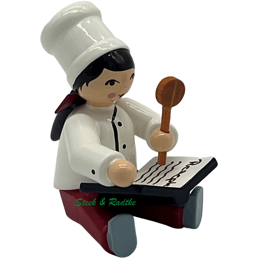 Weihnachtsköchin sitzend rot. Größe: 5-7 cm
