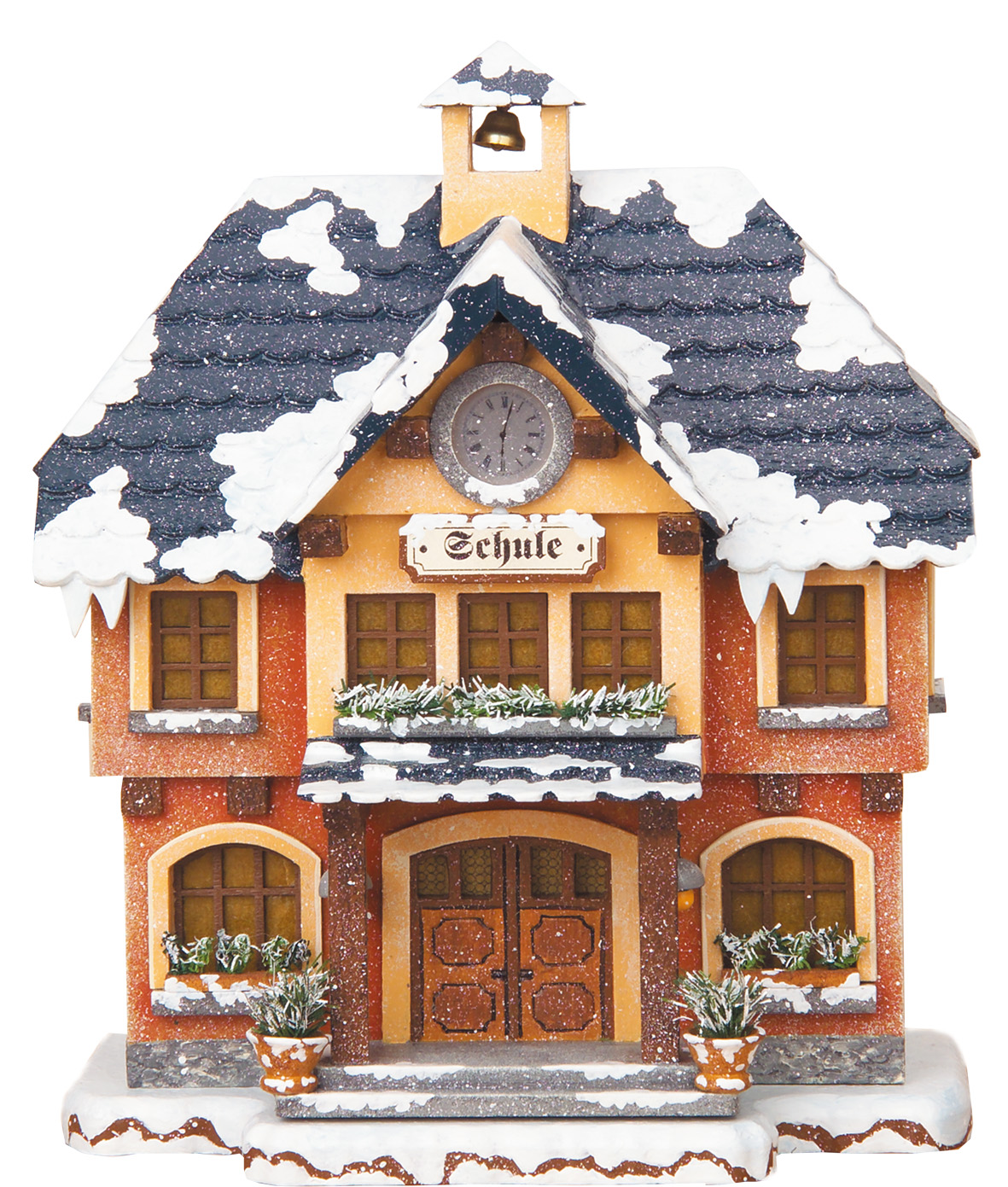 Die Schule ist für viele eine wichtige Etappe des Lebens, die auch bei den Hubrig Winterkindern auf keinen Fall fehlen darf. Besonders viel Aufmerksamkeit wurde dem sorgfältigen Herstellungsprozess dieser mit Schnee bedeckten Holzfigur geschenkt, damit der tägliche Schulbesuch den Wiki mehr Freude bereitet. Trotz "kalter" Stimmung, die deutlich zu spüren ist, ist das Winterhaus mit einigen Pflanzen versehen, was das Ganze noch lebendiger macht. Und natürlich darf eine kleine Uhr nicht fehlen, damit alle pünktlich kommen!