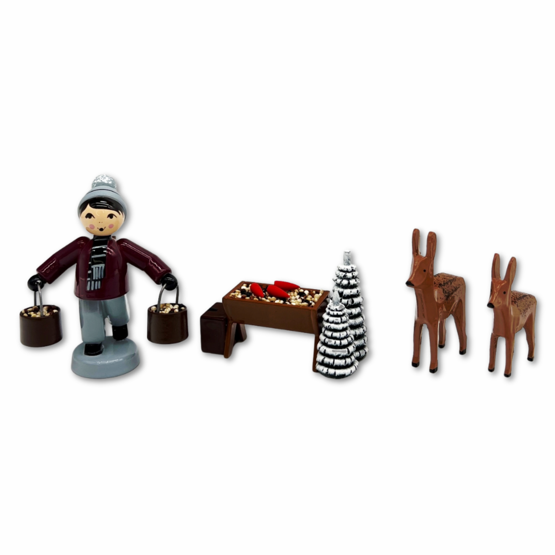 Eine brandneue Attraktion im sagenumwobenen Ulmik-Winterwunderland hat der beliebte erzgebirgische Traditionshersteller mit dieser Kreation des Jahres 2025 geschaffen: Vor traumhafter Kulisse werden die hungrigen Wildtiere gefüttert! Detailgetreue Figurengestaltung, üppige Farbüberzüge und hochwertige Holzverarbeitungen schaffen dabei faszinierende Stücke, die den aufmerksamen Betrachter mühelos in sanfte Tagträume entführen...